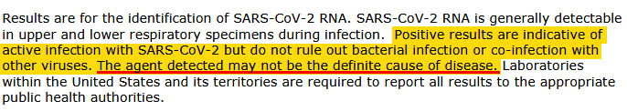 In v kolikor mislite, da so vse skupaj le blodnje teoretikov zarot in odštekanih doktorjev, lahko vaše dvome (vsaj nekoliko) razblini zapis v dokumentu ameriškega Centra za nadzor in preprečevanje bolezni CDC. Dokument je bil nazadnje revidiran decembra 2020 in v njem še vedno piše, da pozitiven rezultat PCR testa ne izključuje bakterijske okužbe ali okužbe še s kakšnim drugim virusom. Zaznava virusa pa še ne pomeni definitivno, da je ravno virus SARS-CoV-2 povzročitelj bolezni.