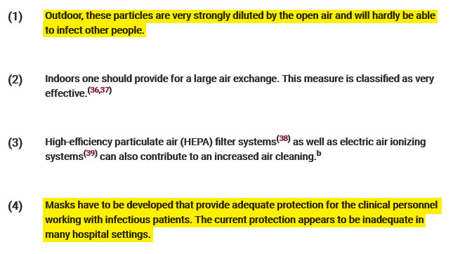 Ob spoznanju, da se novi virus prenaša z aerosoli, je postalo jasno, da do sedaj priporočene maske ne nudijo ustrezne zaščite in da je možnost za prenos okužbe na prostem zelo majhna. Izjave in navodila naših strokovnjakov so v precejšnjem nasprotju s temi ugotovitvami.