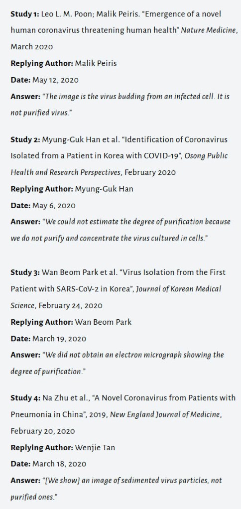 Zahteva po očiščenem virusu pa postane še toliko bolj pomembna pri določitvi, da je virus SARS-CoV-2 res pravi povzročitelj bolezni Covid-19. Znanstveni poskusi in raziskave ne kažejo tako jasne in enoznačne slike, kot nam mediji ves čas poročajo. Ker je ob vnosu nehomogene kužne zmesi težko zagotovo trditi, kaj je v resnici povzročilo obolenje, imajo raziskovalci pri svojem delu precej težav z izpolnjevanjem kriterijev za določitev vzročno-posledične povezave. Toplo vam priporočam ogled posnetka dr. Andrewa Kaufmana, ki razčleni eno od temeljnih raziskav, ki naj bi dokazovala, da novi virus SARS-CoV-2 povzroča novo bolezen imenovano Covid-19. Avtorji študije zatrjujejo, da njihovi rezultati izpolnjujejo vse štiri Kochove postulate, dr. Kaufman pa na razumljiv način pojasni, da njihova raziskava ne izpolnjuje niti enega. Kljub neskladjem med tem, kar avtorji trdijo, da so dokazali in resničnim ugotovitvam, je raziskava dosegla objavo v najprestižnejši znanstveni publikaciji Nature.
