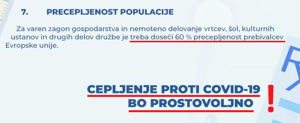 Čeprav so se v prvem valu pojavljale izjave, da bo cepivo obvezno, so sedaj dejali, da bo cepljenje prostovoljno. Bomo pa morali doseči vsaj 60% precepljenost – očitno tudi če bo delež ljudi, ki pristane na cepljenje, manjši. S to stopnjo precepljenosti bomo dosegli tako imenovani učinek čredne imunosti. Čeprav niti ne vemo ali cepivo sploh preprečuje prenos okužb.****************
