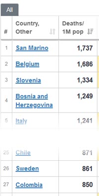V začetku leta 2021 pa smo bili z bolj strogimi ukrepi in striktnejšim upoštevanjem le-teh tretji na svetu po številu smrtnih primerov na milijon prebivalcev. Prehiteli smo tudi Švedsko, ki se je s Covid-19 epidemijo spopadla z veliko bolj liberalnimi ukrepi in je bila pogosto deležna kritik s strani mnogih strokovnjakov, tudi slovenskih.